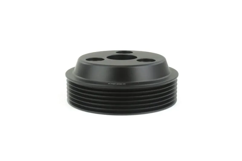 The PERRIN Lightweight Water Pump Pulley is machined from 6061T6 billet aluminum. Featuring an anodized black, blue, or red, finish and laser etched for increased belt life and a precision fit.