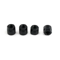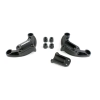 The feet are two-piece assemblies made from machined aluminum and anodized black. The two pieces are held together around the strut bar with four anodized black bolts.