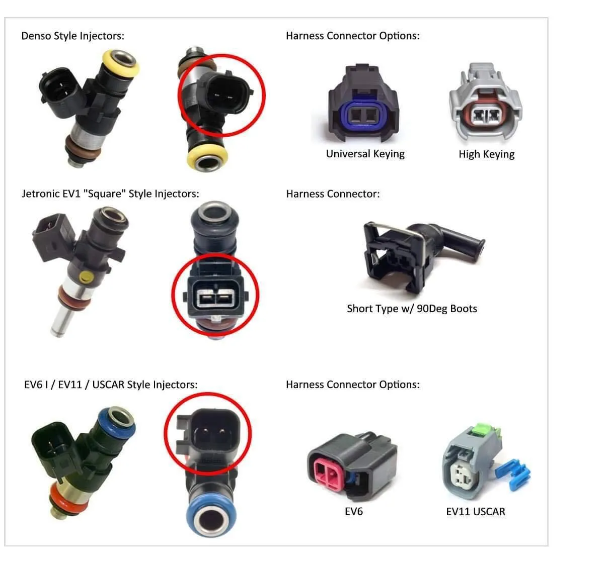 We offer a range of different terminated ends for all the main performance injectors, from 90degree booted Bosch, to Denso and Siemens!