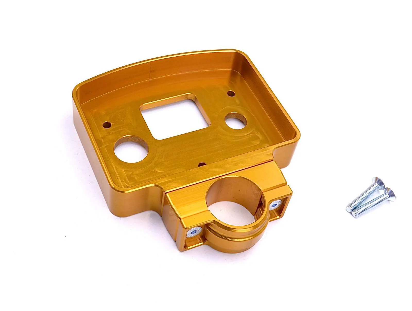 The mounting base comes in either modular format for 38mm aftermarket steering shafts (pictured) or it can come with a base for flat mounting.
