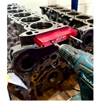 This simple little tool will help you drill your pilot hole before tapping, and flip it over to guide your tap to get your tensioner in the right spot first attempt, but also get it in straight!