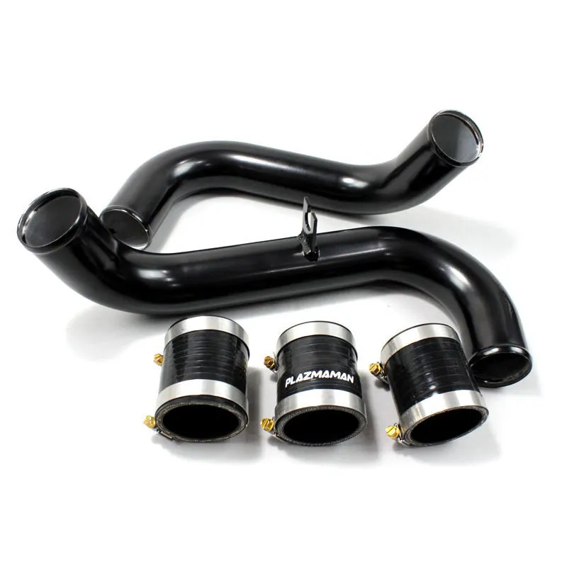 This piping kit replaces the factory rubber hose that runs from the intercooler, to the cast aluminium turbocharger compressor housing elbow and COMPLETELY removes the spring clips.