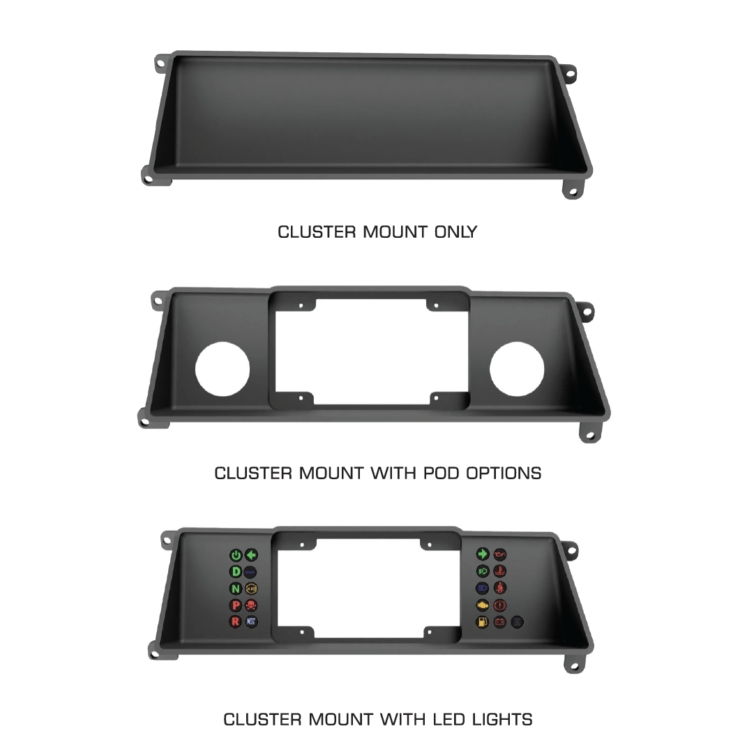 Simply remove your OEM cluster, install your mount and wire up your new dash. The surrounding trim then screws back in place in front of the mount to get a clean, OEM look on the finished install.