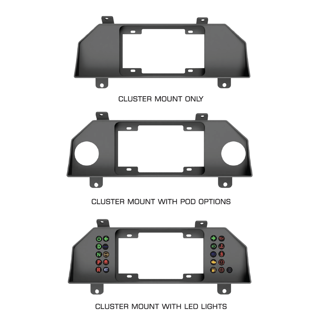 Simply remove your OEM cluster, install your mount and wire up your new dash. The surrounding trim then screws back in place in front of the mount to get a clean, OEM look on the finished install.