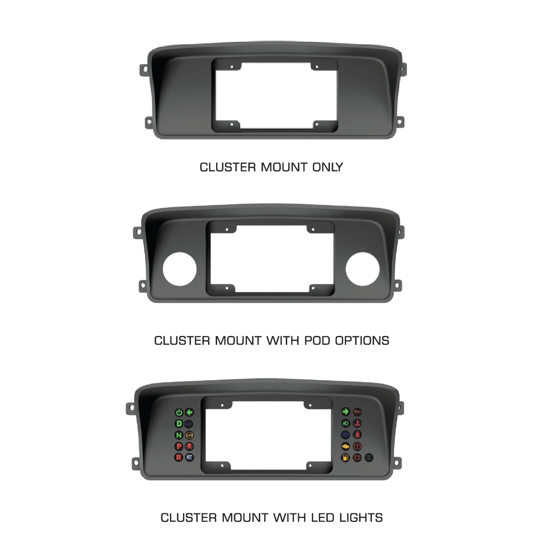 Please note: All cluster mounts are made to order and require a typical 2 weeks lead time from order placement. If you order a dash and cluster together, the dash and cluster will be shipped Separately.