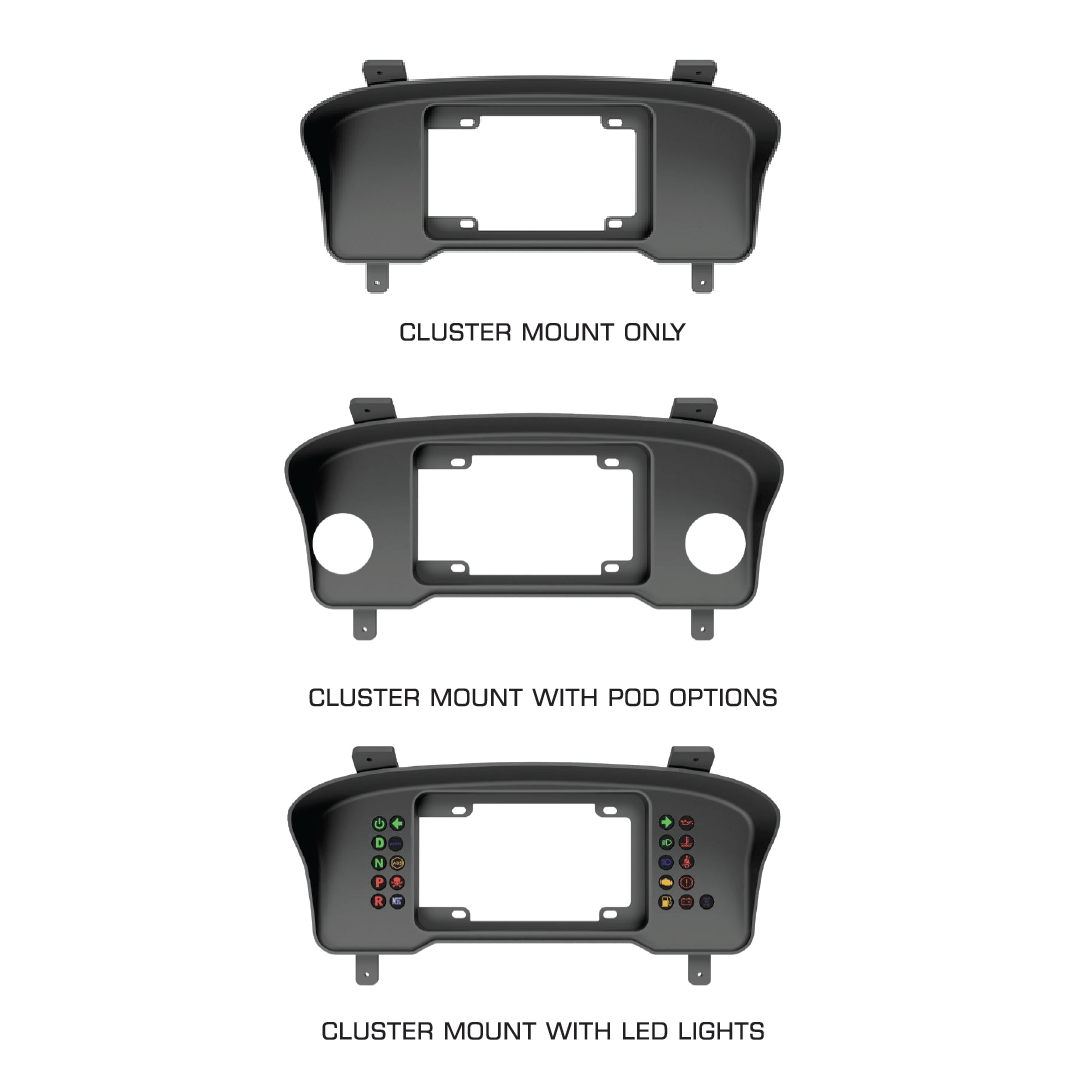 Please note: All cluster mounts are made to order and require a typical 2 weeks lead time from order placement. If you order a dash and cluster together, the dash and cluster will be shipped Separately.
