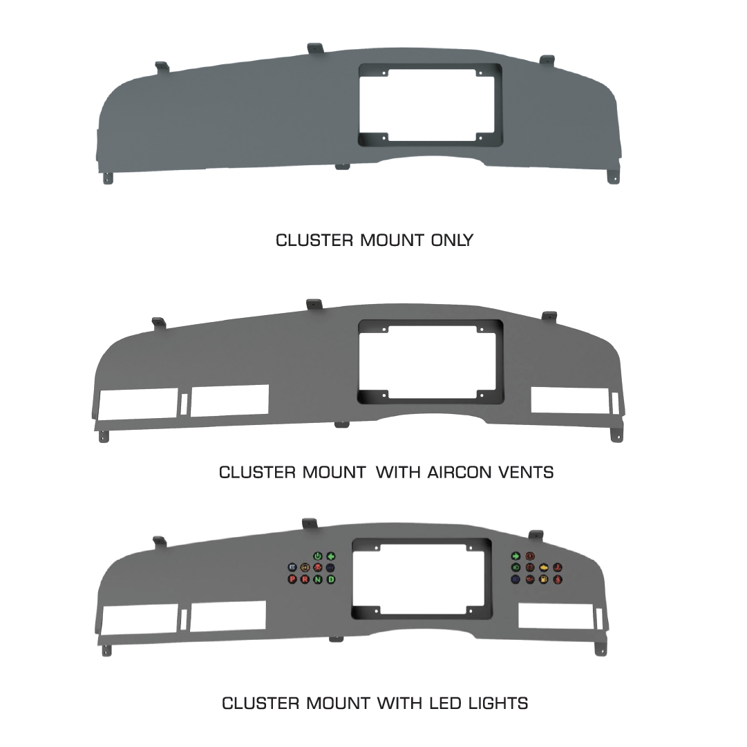 Simply remove your OEM cluster, install your mount and wire up your new dash. The surrounding trim then screws back in place in front of the mount to get a clean, OEM look on the finished install.
