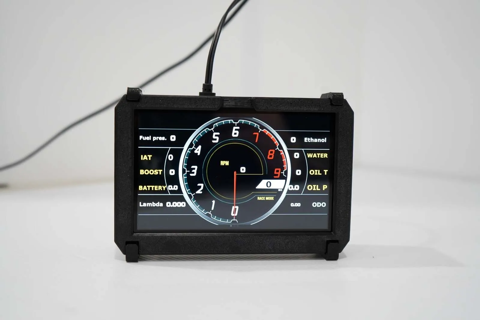 The mini dash contains all of the same features and functions however has a smaller 5" screen instead of a 7", resulting in a much smaller footprint suited for small interiors. See our digital dash product page for full product information!