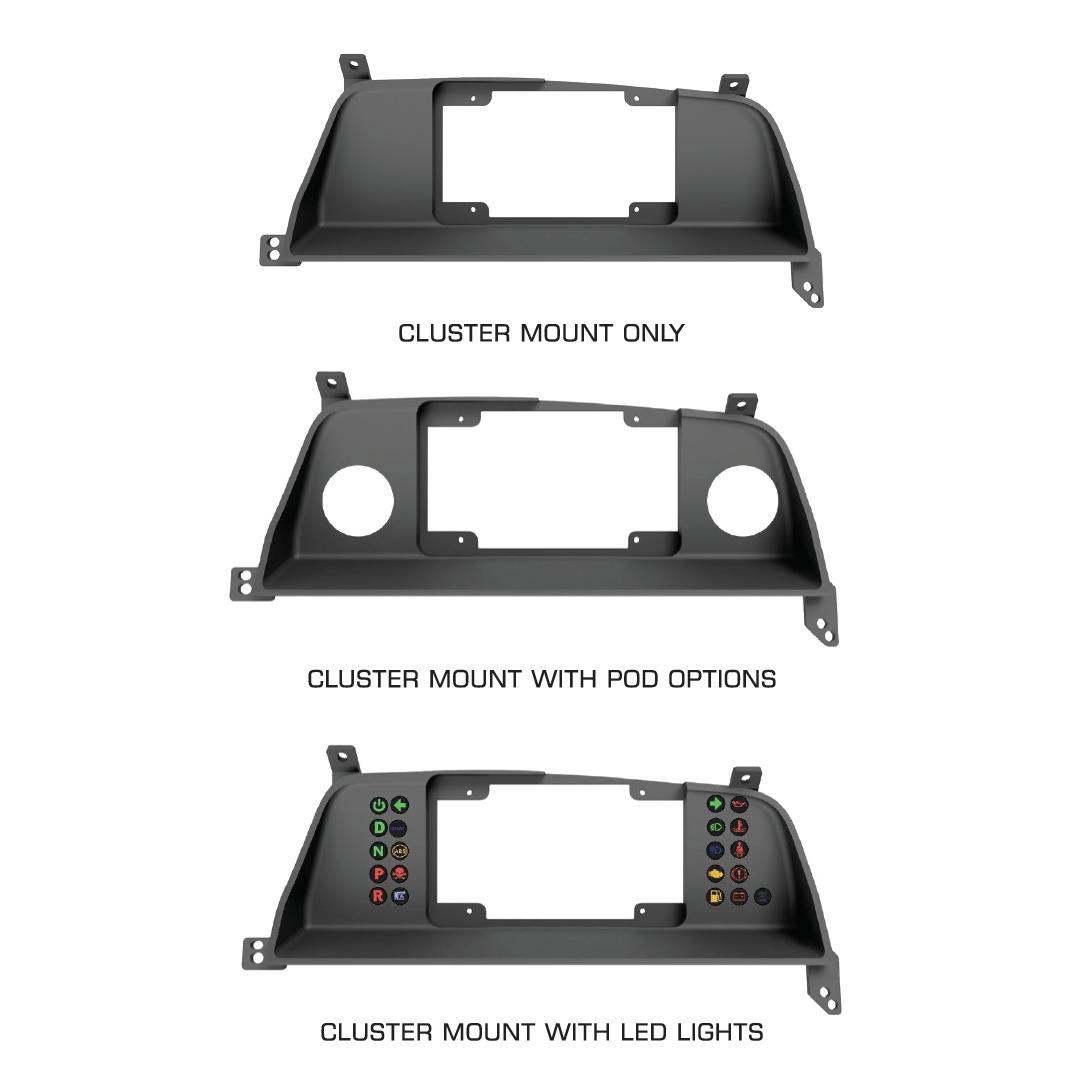 Simply remove your OEM cluster, install your mount and wire up your new dash. The surrounding trim then screws back in place in front of the mount to get a clean, OEM look on the finished install.
