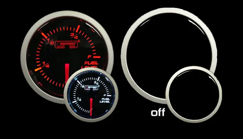 Now You Can Monitor Your Fuel Level With The Same Quality, Looks, And Accuracy As Our Other Gauges. A Full 270 Degree LED Display. The Gauge Reads E, 1/4, 1/2, 3/4, F. This Electric Fuel Level Gauge Will Perform The Pointer Sweep On Start-Up!.