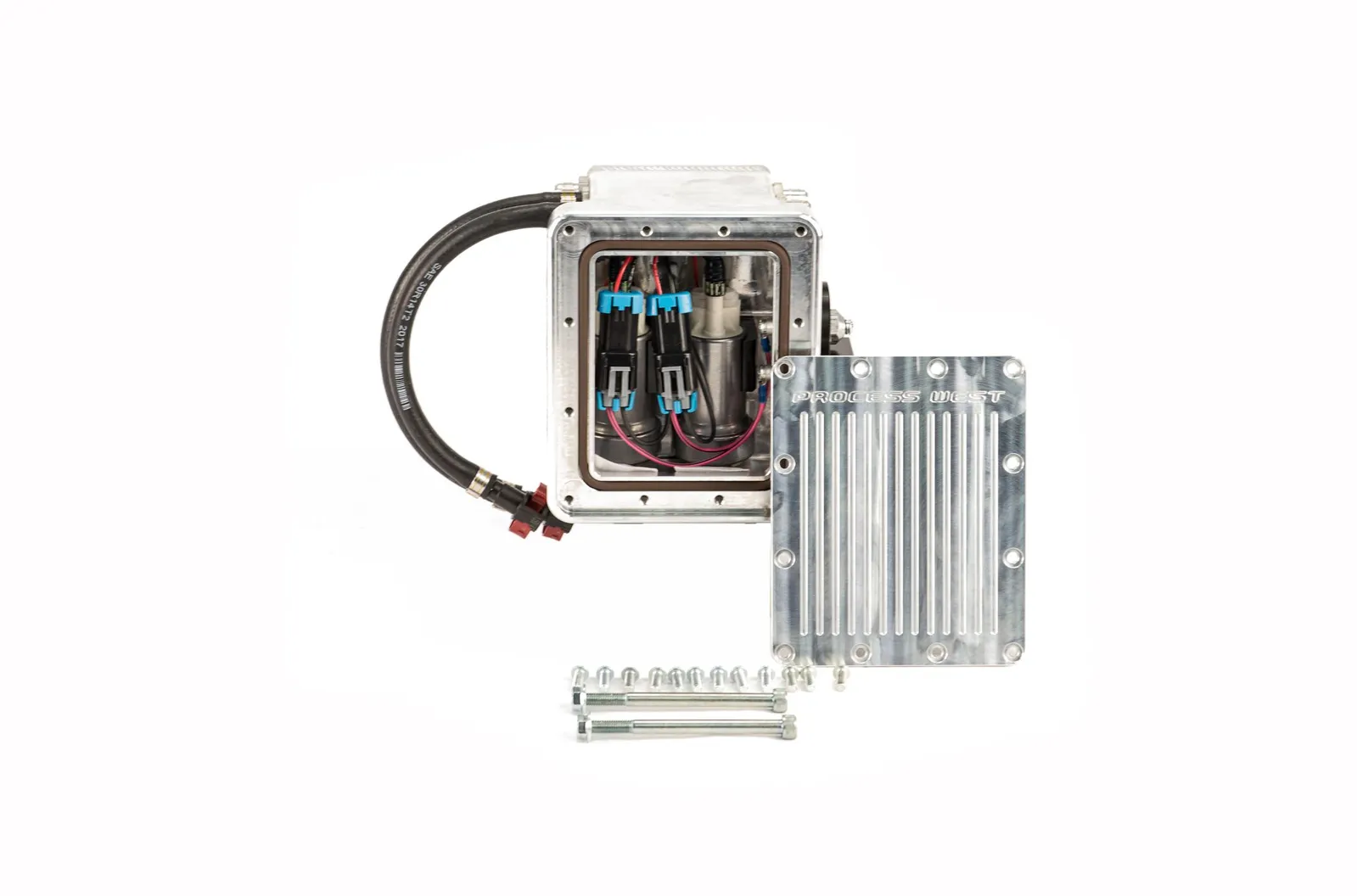 If you have an aftermarket duel entry fuel rail then we have the Process West Stage 2 Fitting Kit. This kit keeps both pump outlets separate, utilizes -6 (3/8in) hose size throughout, AN Speedflow fittings and the Turbosmart FPR1200 fuel pressure regulator.