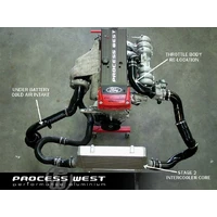 The Process West Stage 2 Front Mount Intercooler Core for the Ford BA/BF Falcon is a 500 x 360 x 80mm bar & plate core, with hi-flow polished aluminium end tanks. This allows for smooth flow and effective cooling of the charge air entering the engine. Includes cold-side intercooler piping with lightweight mandrel bent aluminium piping.