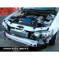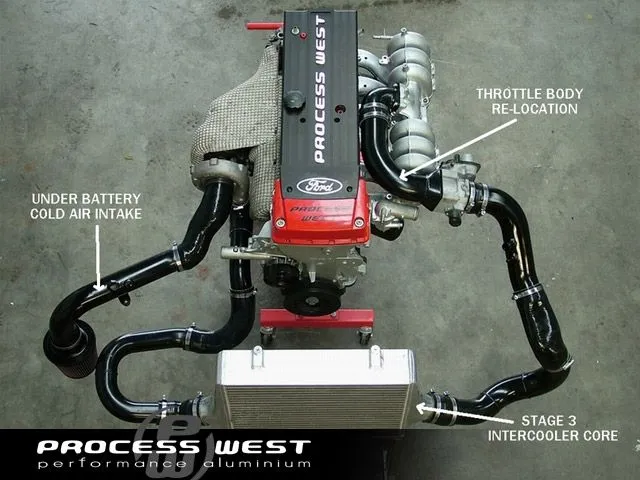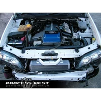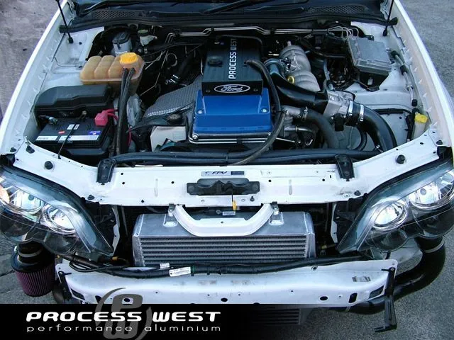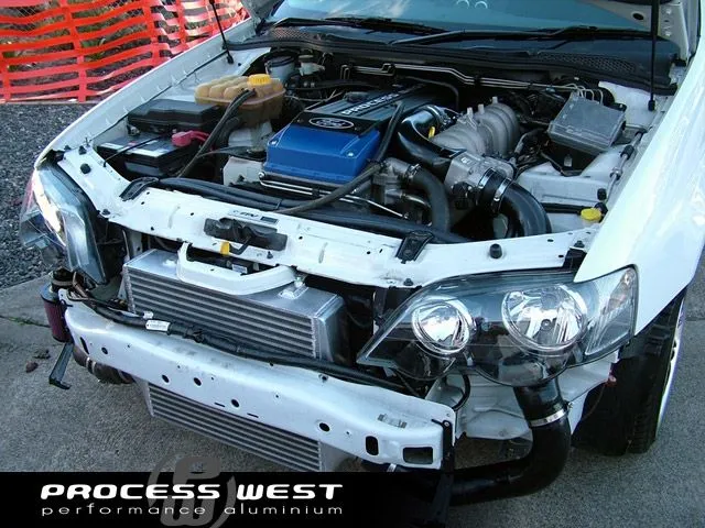 The Process West Stage 3 Front Mount Intercooler Core for the Ford BA/BF Falcon includes a 500 x 425 x 100mm bar & plate core, which is the largest and most efficient intercooler for the BA/BF Falcon on the market today. This allows for smooth flow and effective cooling of the charge air entering the engine. Includes hot and cold-side intercooler piping with lightweight mandrel bent aluminium piping.