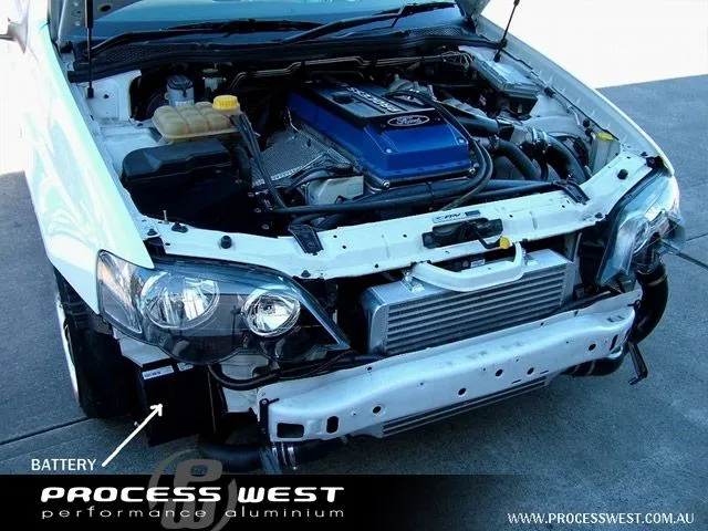 The Process West battery relocation kit has been developed to move the existing battery from the factory position to give clearance for large air box installations.