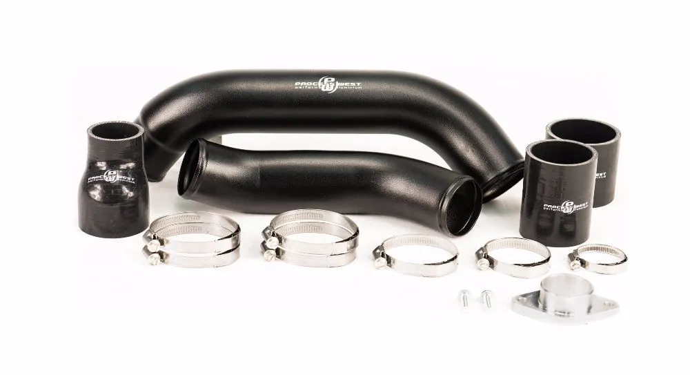 The Process West Charge Pipe Kit for the 2015+ Subaru WRX, is the best upgrade charge pipe kit on the market. Made in 2 pieces it is easy install, without the hassle of trying to feed one big pipe into position and includes all the necessary couplers and clamps for the perfect fitment. The charge pipe kit provides a much smoother air flow path from the turbo to the intercooler, over the factory pipe. Finished in a nice black powdercoat, the upgrade doesn't look out of place, and gives a factory appearance.