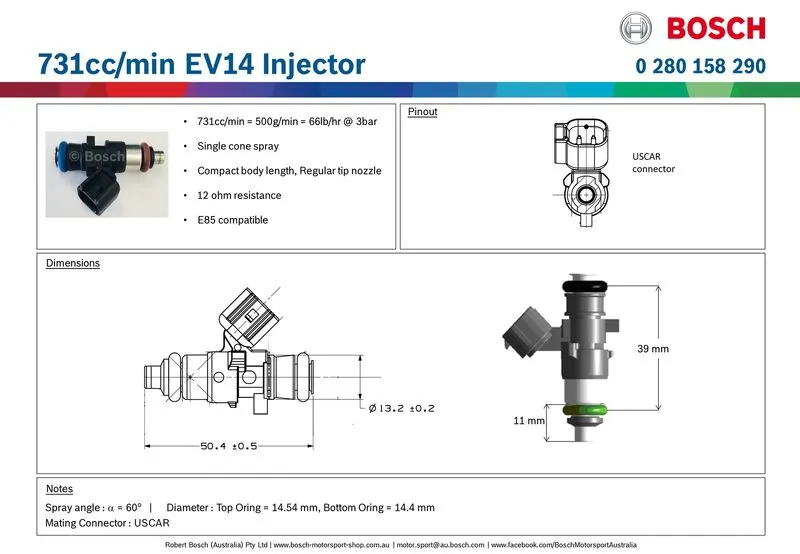- Bosch EV14 high precision injector internals are validated for use with E85 fuel.
