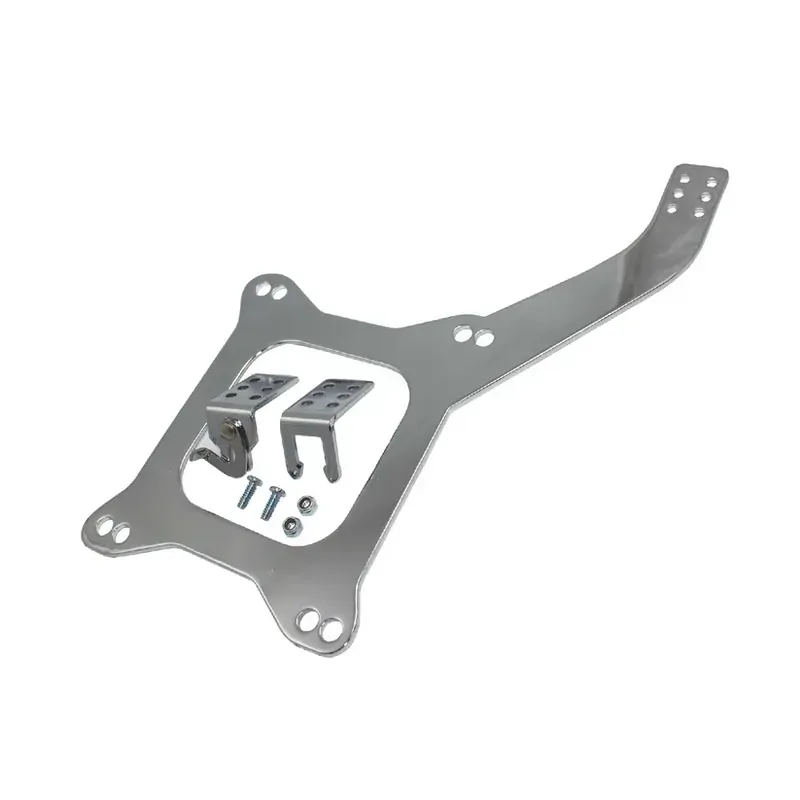 Proflow'schrome steel carburetor linkage plate is convenient and looks great. It mounts to the base of a Holley or Carter AFB carburetor and is compatible with GM and Morse style cables.