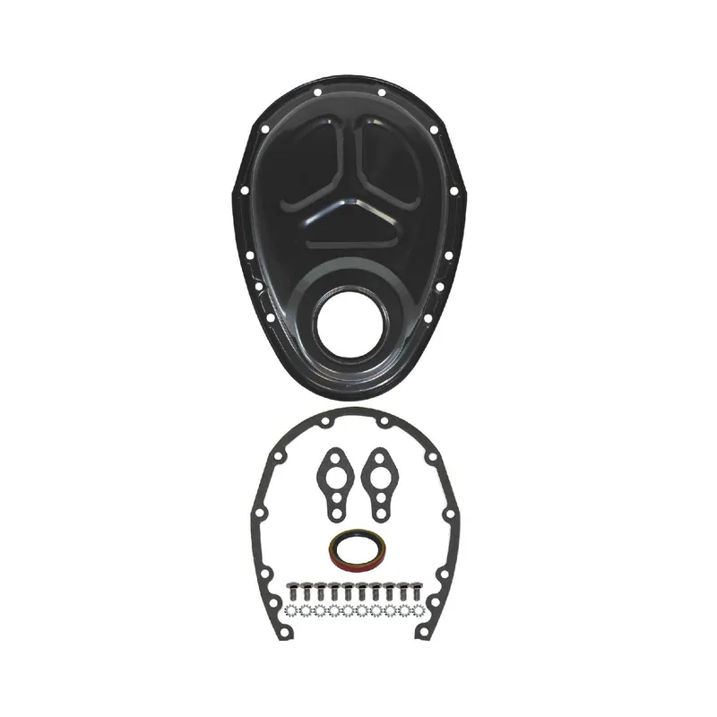 Proflow timing cover kits are made from durable steel that's designed for use with OEM-style timing chains. They add strength and durability to the front of your engine, not to mention good looks! Come with seal, gaskets and hardware.