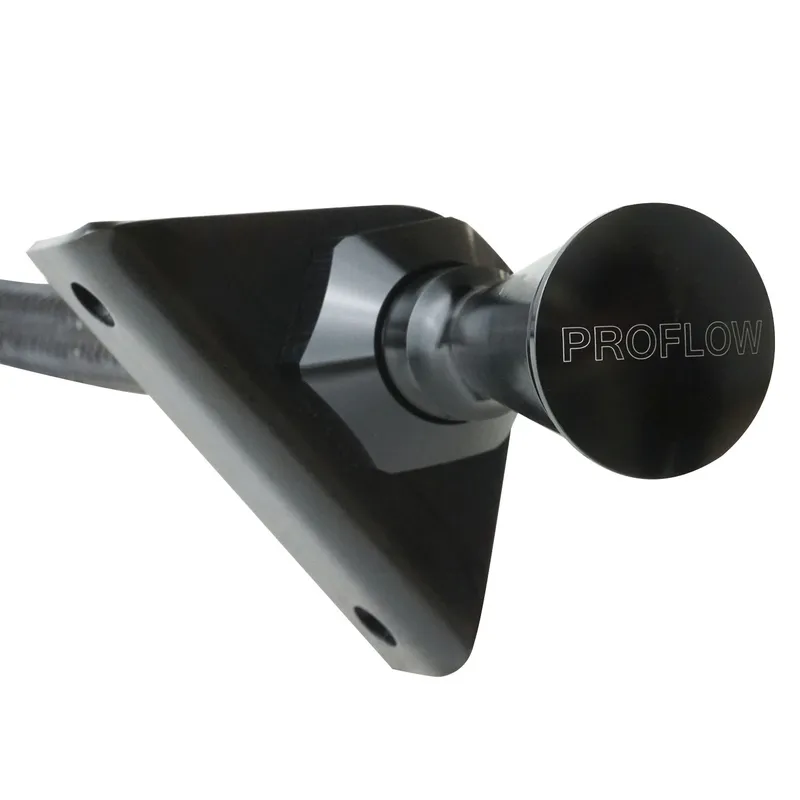 You get flexibility with our PTFE flexible stainless transmission dipstick. Kit comes complete with a braided stainless outer housing and a heat resistant, easy to read flexible inner dipstick cable. Inner cable is molded with appropriate trans fluid levels. Billet aluminium handle and billet aluminium fittings complement Proflow's flexible engine dipsticks.