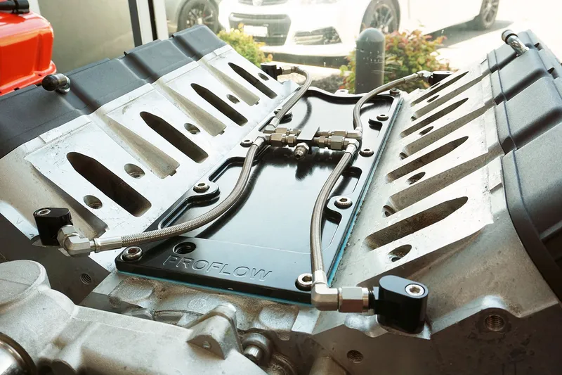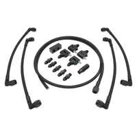 Proflow's LS water cross over kits eliminate trapped air and steam from your cylinder heads, preventing hot spots and overheating. This can cause head gasket failures, lean cylinders and pre-ignition. They connect to the vent ports on each corner of the cylinder heads (2 port or 4 ports options available), which is then routed to either the radiator or water pump. This kit includes stainless steel PTFE black braided hose and the appropriate fittings and distribution blocks for a simple installation. They also offer a more attractive look than the OE rigid hard lines and provide flexibility when using aftermarket intakes and other accessories on performance LS vehicles. Will not suit factory intake (requires 20mm of clearance under the manifold).