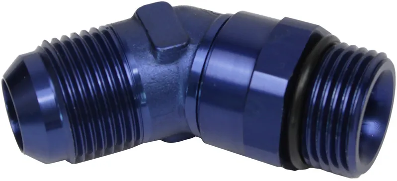 These metric aluminium swivel fittings convert M12 thread to AN6, simplifying plumbing. They are available in blue or black and in 45 or 90 degree versions.