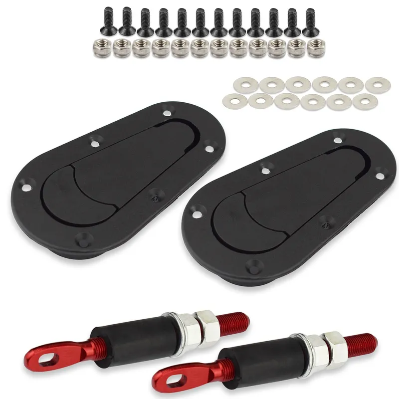 These bonnet latches are lightweight, high strength, and have a spring loaded latch mechanism. The stainless steel pin engages with the included aluminium hood pin for a secure fit. These compact, aerodynamic assemblies are the perfect modern replacements for onventional hood pins.