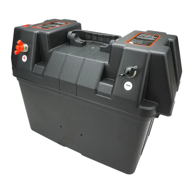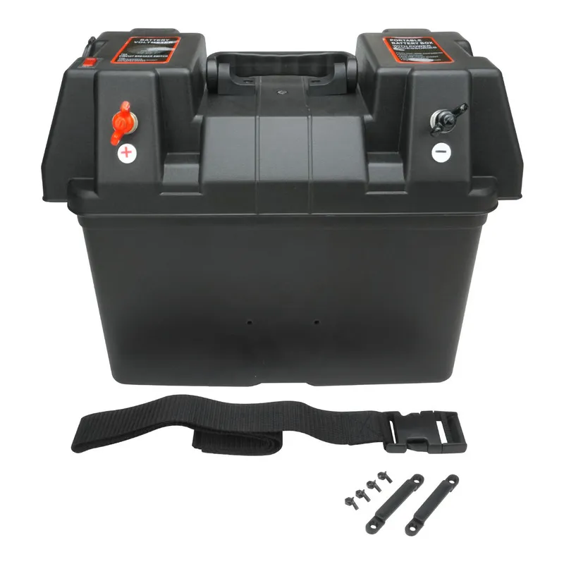 These battery boxes simply fit your deep cycle battery which converts it to a portable power bank and feature a handy LED display to show your battery voltage. This can also be used to mount a second battery in the cargo area of a caravan, wagon, SUV or 4WD. Suitable for most popular battery types and sizes, it includes a range of adaptor ports (USB and 12 V socket) with a webbing strap, brackets and bolts.