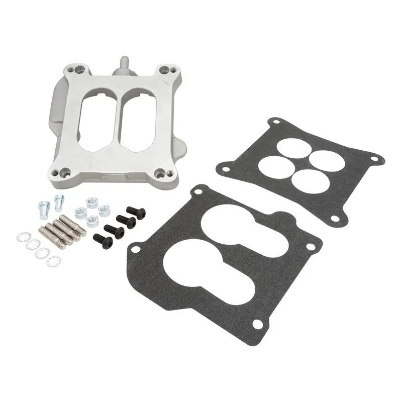 Proflow carburettor spacers offer many advantages. They extend the length of the intake mixture column to improve air/fuel distribution and reduce the fuel temperature inside the carb, resulting in a denser, more powerful fuel charge. They’ll also help with linkage clearance when using custom throttle setups. They’re available in various thicknesses in both open and ported plenum designs. Stud kit and gaskets included.
