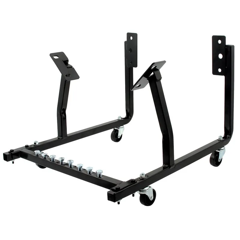 Proflow's high-quality roll-about engine cradles are made from 14 gauge square steel tubing and have a black powder coated finish. They can be disassembled for storage when not in use and include Grade 5 fasteners and 3 caster wheels. Max weight limit is 1,000 pounds.