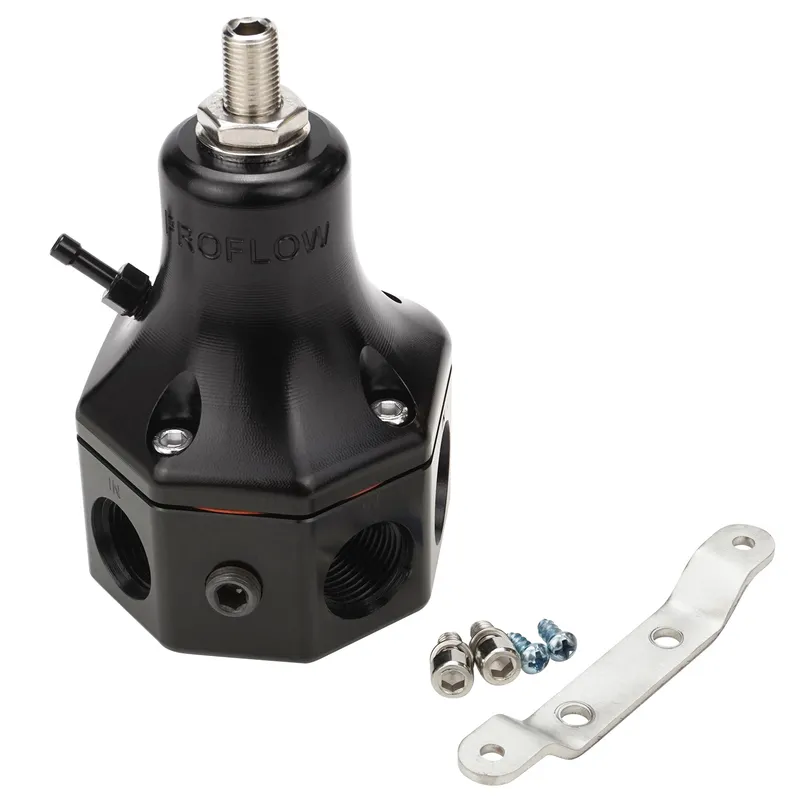 Proflow's Pro-Series boost referenced EFI regulators are designed to deliver enough flow to support a whopping 2,000 HP! They're perfect if your application requires one or even two Pro-Series pumps. It also features a boost/vacuum reference port, which enables the regulator to compensate for boost pressure on a 1:1 ratio. Proflow's Pro Series regulator is designed to be extremely flexible in use, allowing you to use either two -10AN inlet ports, two -08AN inlet ports and a -010AN Return port. These 4 ports can be plumbed in any way you like to suit your vehicles needs. Now with sleek styling, a stainless steel diaphragm seat and even lighter than before, this EFI Regulator is the best choice for engines requiring a large volume flow rate of fuel.