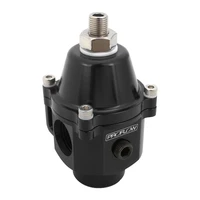 Proflow’s new high-volume carburetted fuel pressure regulators are excellent upgrades from the standard popular 2-port designs. The internal stainless steel check valve is spring damped, allowing for more accurate fuel pressure control while also reducing creep. They are ideal for high powered carburettor and nitrous applications where higher fuel flow and quicker pressure response times are desired. This fuel regulator works best with a minimum fuel pump pressure supply of 15 PSI and can support up to 1100 HP naturally aspirated or 800 HP using E85. Black anodised, E85 compatible, and supplied with two billet mounting bracket options.