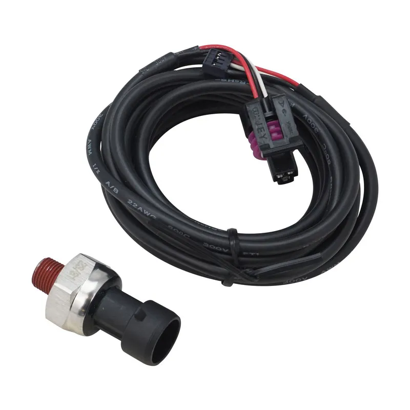 This oil / fuel pressure sensor reads from 0 - 150 PSI, has a 1/8" NPT thread and also comes with a wiring harness for simple wiring.