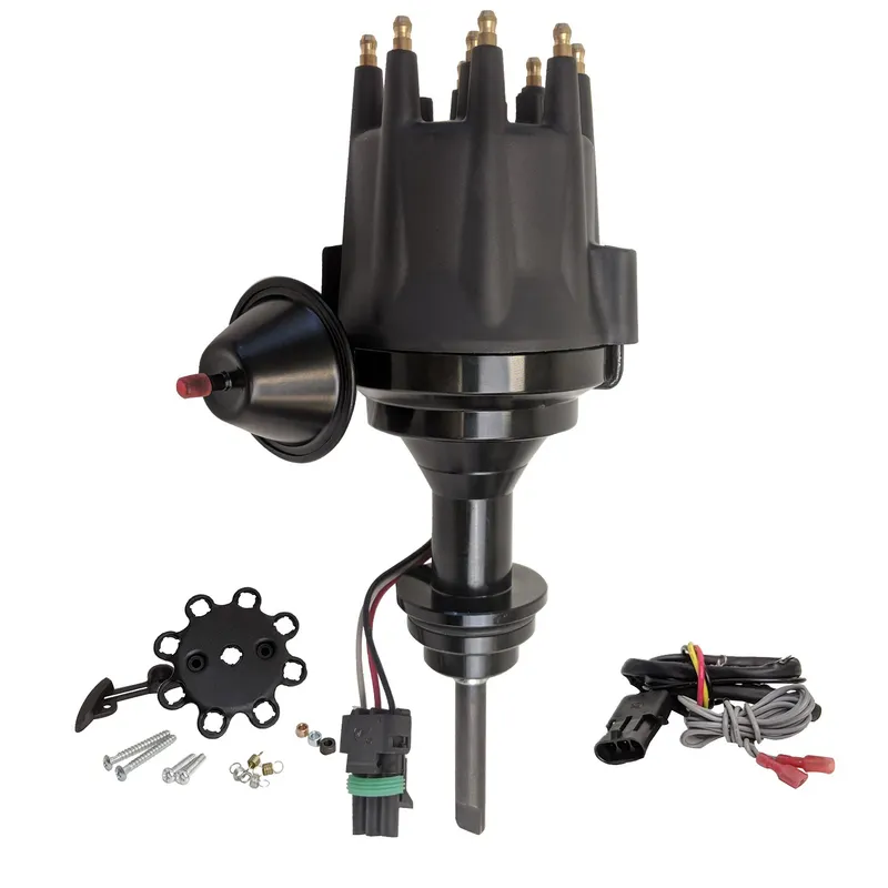 Our billet Ready-to-Run distributors are the perfect upgrade for any V8 engine. They feature a built in module and vacuum advance, with separate tacho wires, making connections easy. Suitable for most modified street engines.