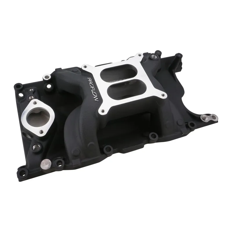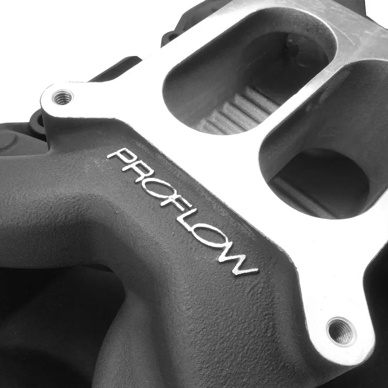 Proflows AirMax intake manifold for propular V8 engines features improved technology and design that keeps the air/fuel mixture cooler all the way to the cylinder heads. The open air space from the AirMax design separates the runners from the heat of the lifter-valley cover. The runners are tuned to move the power band 1,000 rpm higher over the original AirDuel manifolds to 1500-6500 rpm.