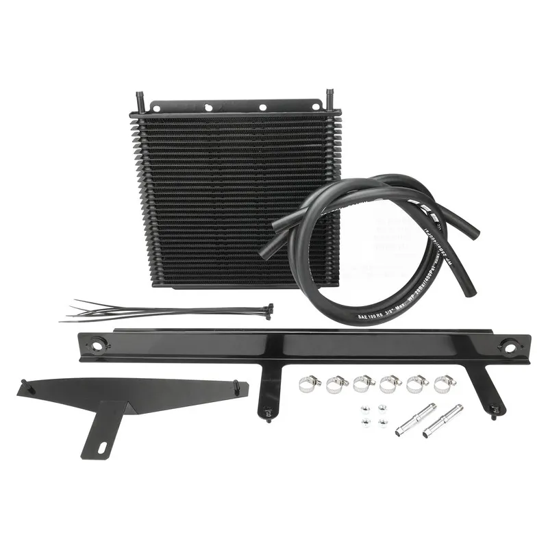 Proflow’s plate and fin transmission oil coolers are made of a full powder coated aluminium construction, maximising heat transfer by increasing fin surface area to efficiently and effectively reduce oil temperatures. The louvered fin design offers a balance of excellent cooling while limiting pressure drop across the large 19 mm core. Pressure rated for up to 200 PSI, these transmission oil cooler kits are great additions for all performance applications including the street or track. Comes with all necessary mounting hardware to complete the installation including hoses, fittings and mounting brackets.