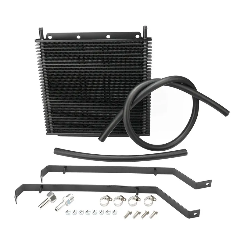 Proflow’s plate and fin transmission oil coolers are made of a full powder coated aluminium construction, maximising heat transfer by increasing fin surface area to efficiently and effectively reduce oil temperatures. The louvered fin design offers a balance of excellent cooling while limiting pressure drop across the large 19 mm core. Pressure rated for up to 200 PSI, these transmission oil cooler kits are great additions for all performance applications including the street or track. Comes with all necessary mounting hardware to complete the installation including hoses, fittings and mounting brackets.