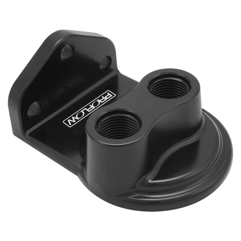 A remote oil filter head allows you to relocate your oil filter for easy access and quick servicing. It also gives you the option to run an oil cooler before entering back into the engine. It has a 3/4”-16 thread and suits a Ford or any small o-ring filter, such as a FRAM HP1 filter. It has 2 x AN8 ORB ports and an integrated mounting bracket for simple installation.