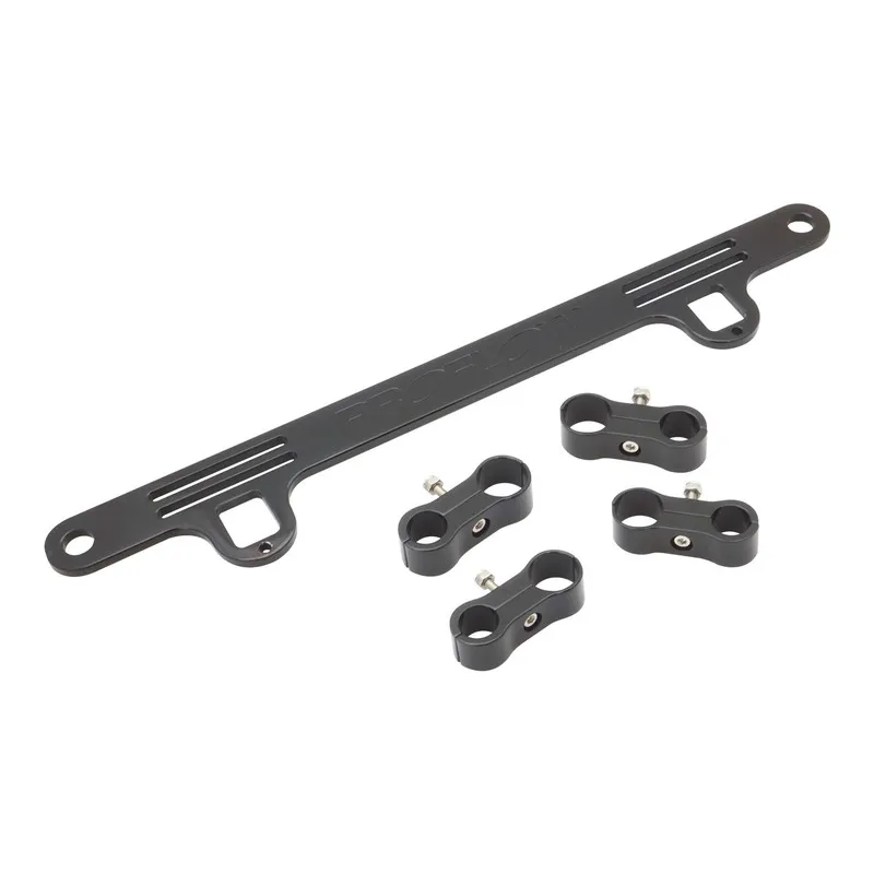 Proflow's turbo and water line support bracket is designed for the turbocharged Ford Barra engine which helps to secure the turbo oil and water feed lines in a neat and tidy fashion, preventing them from falling onto the drive belt. This bracket utilizes the two front timing case bolts on the front of the engine. This kit also comes with 4 billet hose seperators, with ID's of 11.1mm and 14.2mm to suit most hose size applications.
