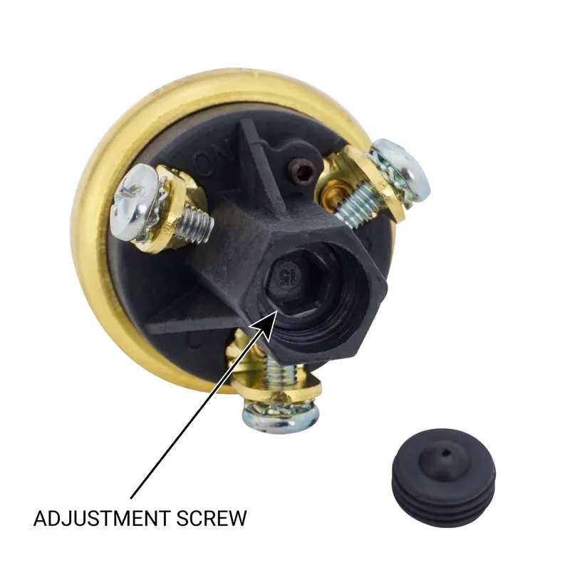 Clockwise to increase the pressure set point / Anti Clockwise to lower set point - Hex screw under rubber cap