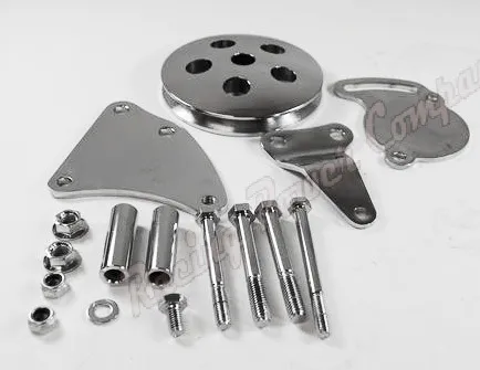 Proflow's steel power steering pump bracket kits have everything required to mount your GM early style pump or Type II to Chevrolet engines. Available in chrome plated or black powder coated finish.