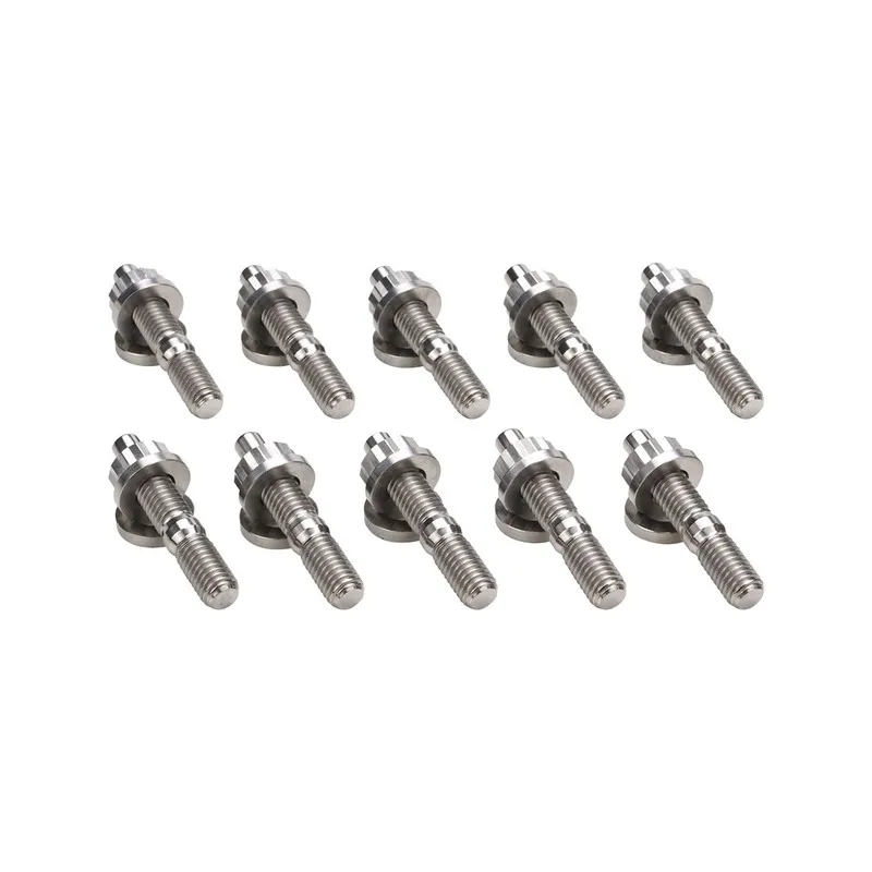 Manufactured from Ti-6Al-4V Grade 5 titanium, Proflow's titanium exhaust manifold stud kits for most popular engines are a perfect upgrade over your factory studs when chasing some big power! It is common for the factory manifold studs to come loose and fail over time due to the heat cycles produced by the cylinder head, and this can become a bigger issue especially when you are using aftermarket bolt-ons such as upgraded turbochargers. These studs come with washers and 12-point nuts which provide a larger clamping force, achieved by the bigger washer diameters, decreasing the chances of these studs vibrating loose over time. They also incorporate a hex key tip that allows them to be easily installed using an allen key.