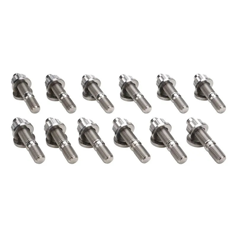 Manufactured from Ti-6Al-4V Grade 5 titanium, Proflow's titanium exhaust manifold stud kits for most popular engines are a perfect upgrade over your factory studs when chasing some big power! It is common for the factory manifold studs to come loose and fail over time due to the heat cycles produced by the cylinder head, and this can become a bigger issue especially when you are using aftermarket bolt-ons such as upgraded turbochargers. These studs come with washers and 12-point nuts which provide a larger clamping force, achieved by the bigger washer diameters, decreasing the chances of these studs vibrating loose over time. They also incorporate a hex key tip that allows them to be easily installed using an allen key.
