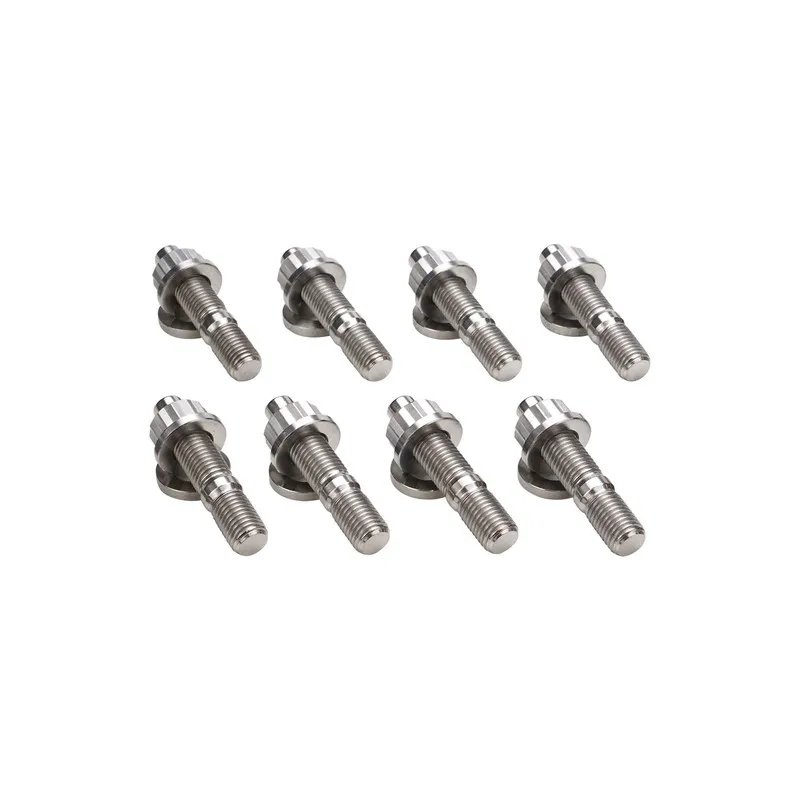 Manufactured from Ti-6Al-4V Grade 5 titanium, Proflow's titanium exhaust manifold stud kits for most popular engines are a perfect upgrade over your factory studs when chasing some big power! It is common for the factory manifold studs to come loose and fail over time due to the heat cycles produced by the cylinder head, and this can become a bigger issue especially when you are using aftermarket bolt-ons such as upgraded turbochargers. These studs come with washers and 12-point nuts which provide a larger clamping force, achieved by the bigger washer diameters, decreasing the chances of these studs vibrating loose over time. They also incorporate a hex key tip that allows them to be easily installed using an allen key.