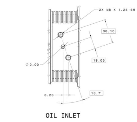• Oil Feed: See graph below(OIL INLET) (an oil restrictor with ~1mm orifice is highly recommended)