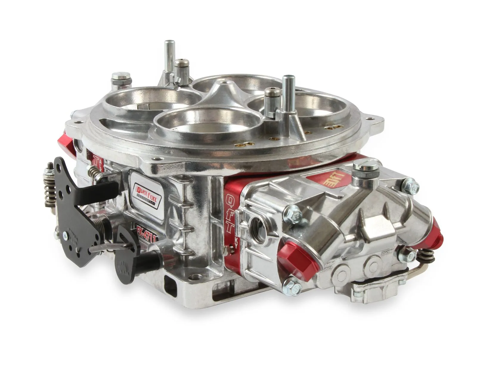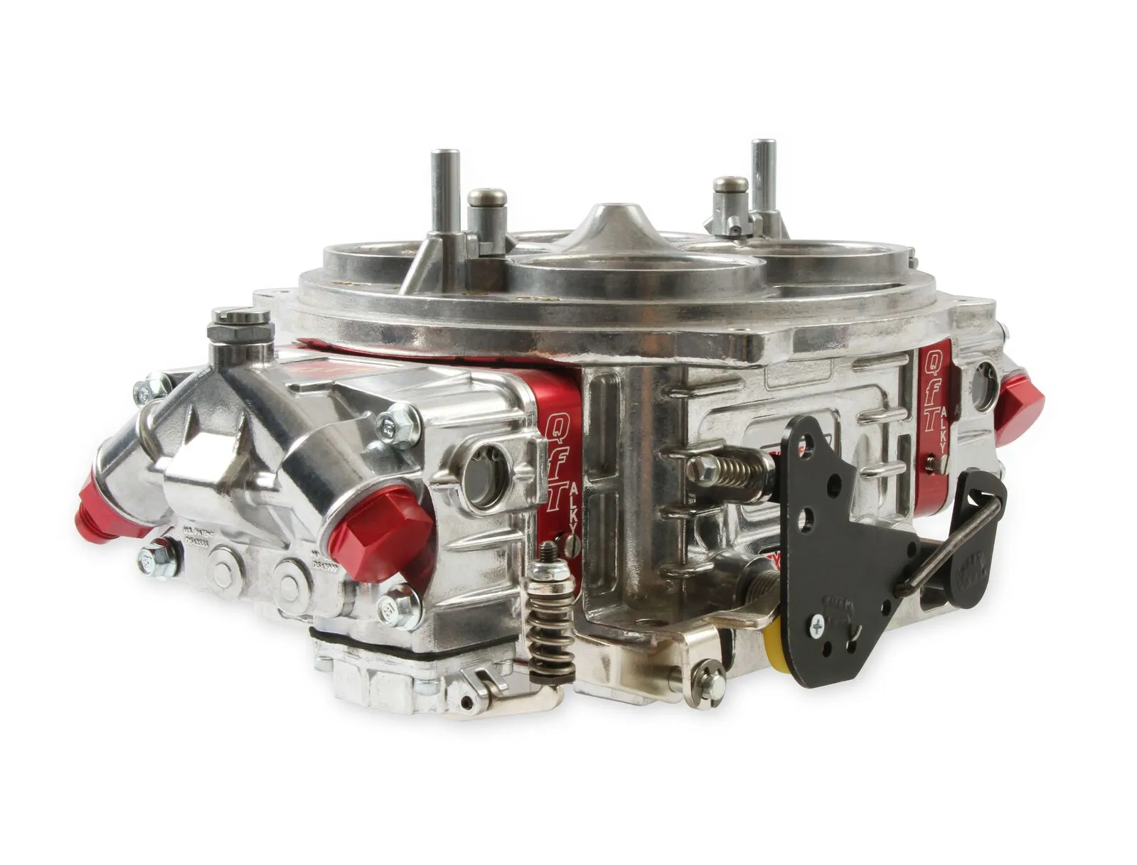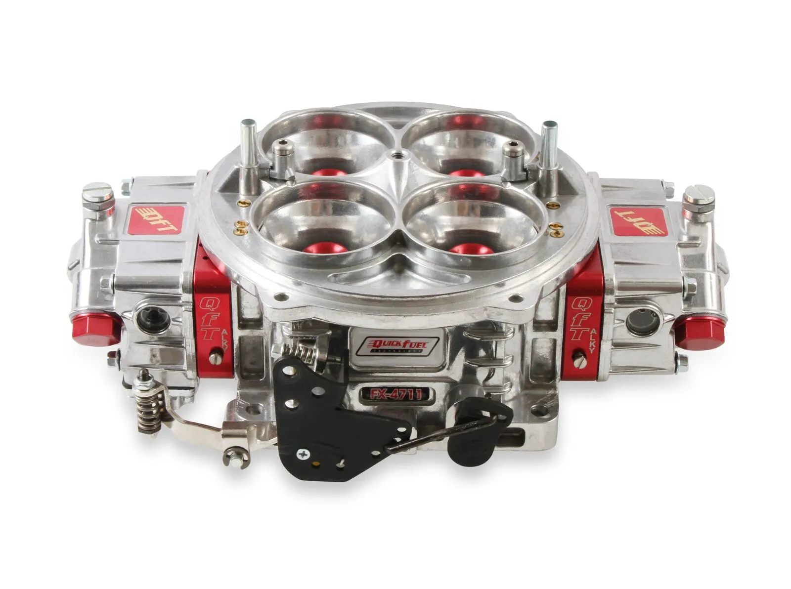 Serious drag racing demand a serious drag racing carburetor, and the QFX-Series stands as the flagship model in QFT's lineup. Raised air horns improve entry angle into the venturi while ensuring undisrupted flow over the air bleeds. Annular boosters with CNC-machined billet aluminum inserts provide increased air flow, a stronger signal, and less turbulence. QFX carbs offer unparalleled fuel atomization with annular boosters specific for either gas, methanol, or E85 fuels. Five-emulsion billet metering blocks and four-corner idle circuits offer flexible tunability that today's high-horsepower engines demand. To cover a broad range of applications, methanol- and E85-compatible models, as well as two- and three-circuit fuel systems, are available. Ready to run out of the box, the QFX-Series carburetor will help you get to the winner's circle.