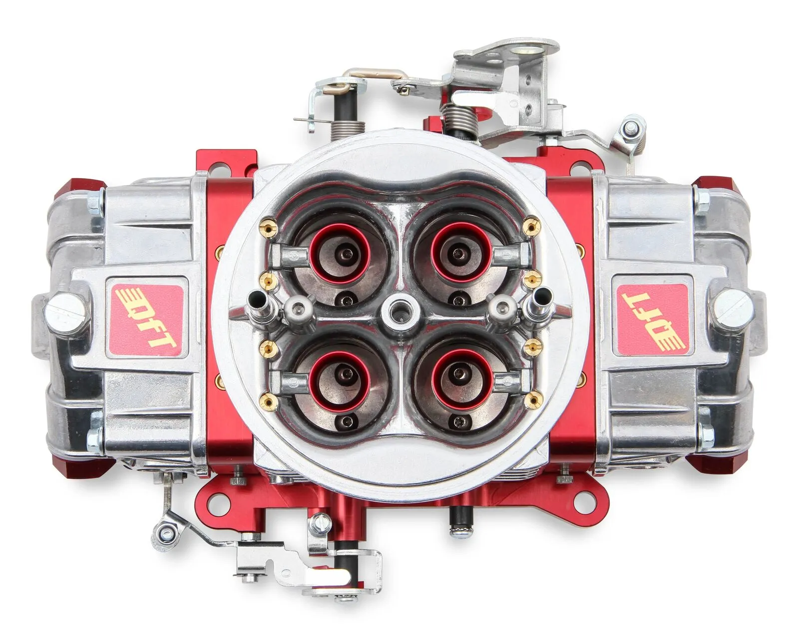 Ideally suited for bracket racers and weekend warriors alike, Q-Series carburetors are purpose-built for the dragstrip. To combat the g's experienced during hard launches, Q-Series carbs are equipped with notched floats and secondary jet extensions. The high-flow aluminum main body isn't just lightweight, but it also features recessed air bleed cavities for improved air flow. Die-cast venturi are machined to exacting tolerances for outstanding throttle response. Billet metering blocks ensure a uniform fuel curve, while throttle-bodies enhance durability. For those days when track conditions vary from one pass to the next, QFT's QuickLink system makes adjusting the secondaries easy on models equipped with mechanical secondaries. The Q-Series is our most comprehensive line of carburetors, with applications available for use with gasoline, methanol, and E85 fuels, forced induction, drag race, circle track, and comes in both vacuum and mechanical secondary models.