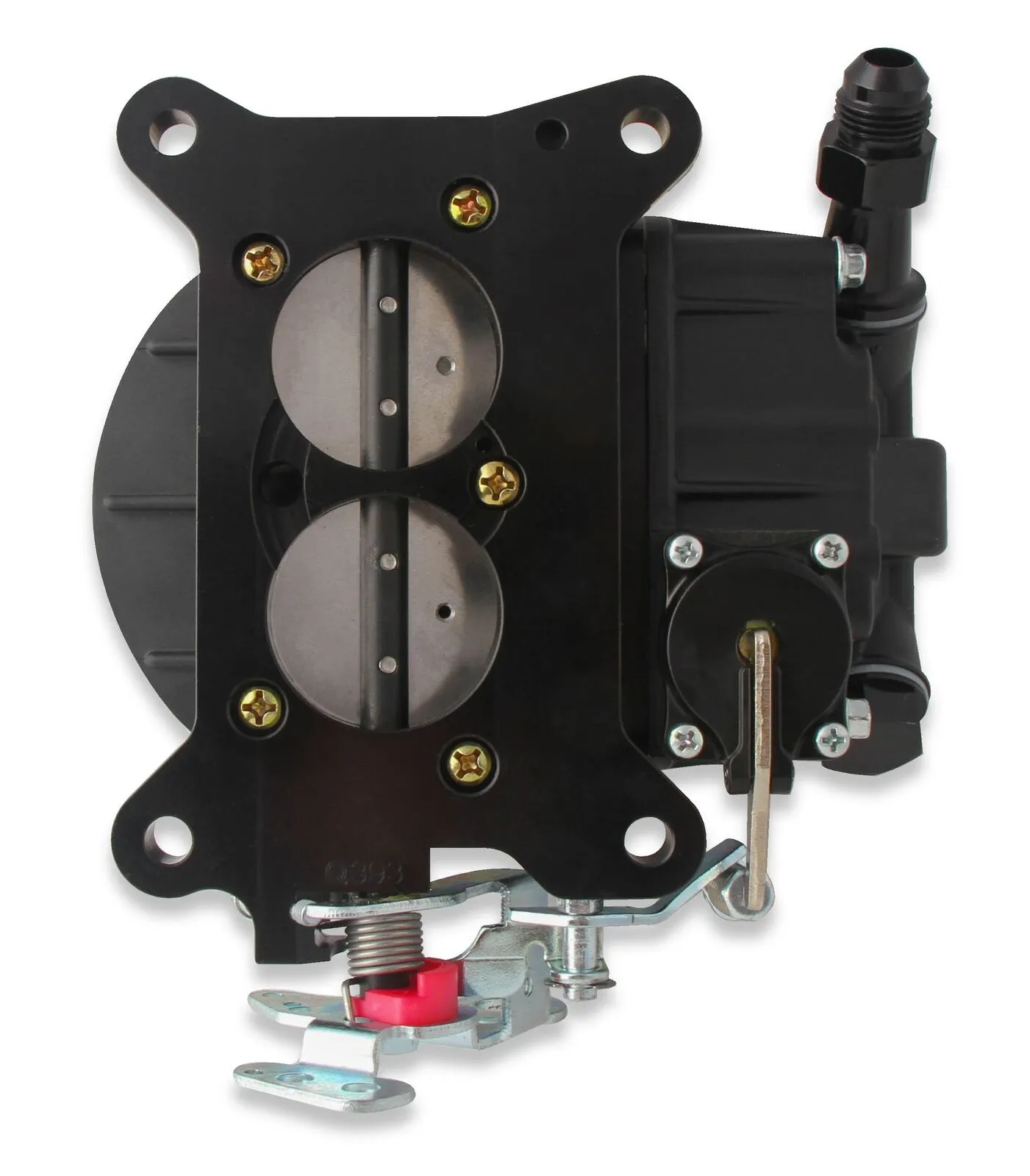 - Black anodized billet 2-Circuit metering block and throttle body