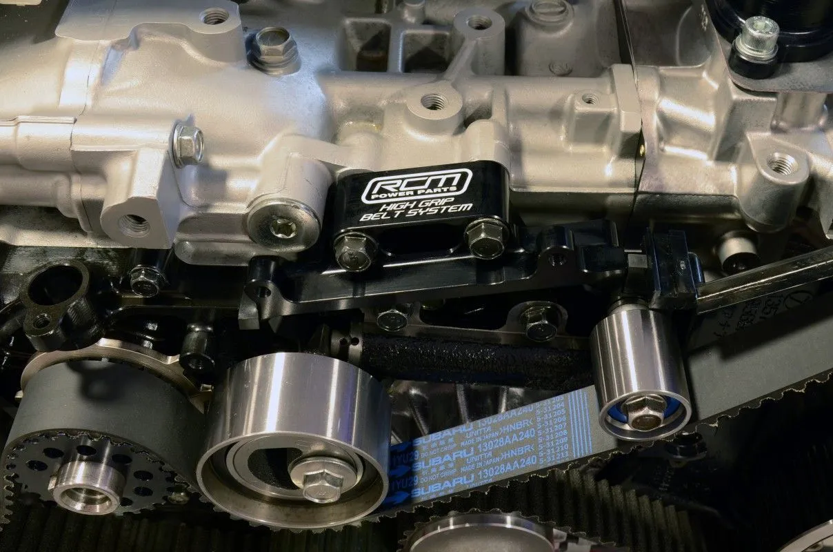 For many years, race and rally teams have preferred to use the original 2 piece tensioner system as it is more reliable than the later single piece tensioner.  However, this has the disadvantage of not using a small idler bearing to reduce belt bounce and flex.