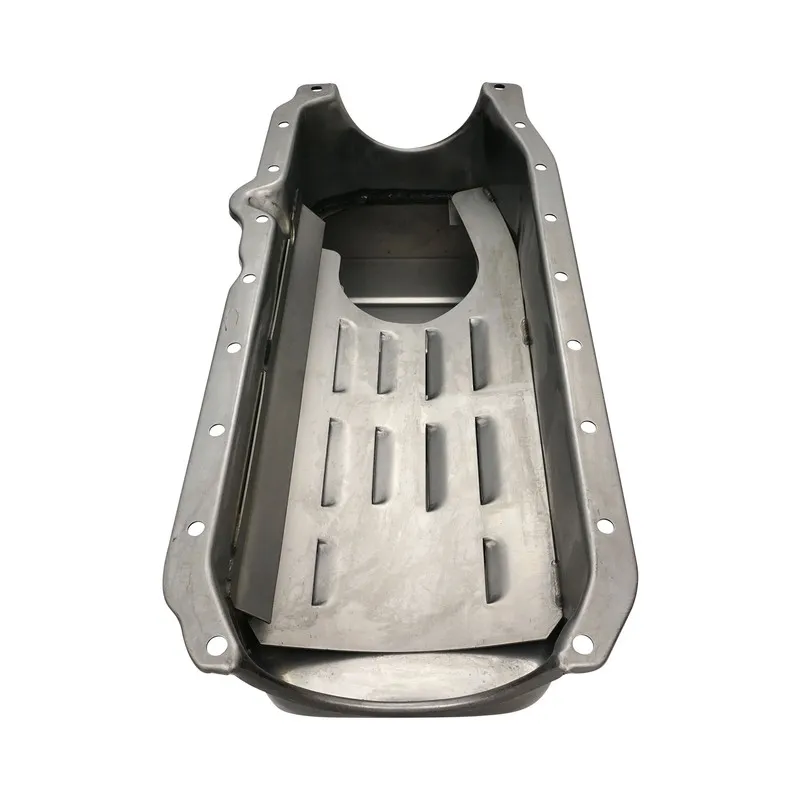 RTS Stroker super oil pans available for most popular V8 engines are the perfect choice for street or track driven high performance Vehicels with Large Cube Inch Engines. These pans start out as new stamped steel pans which are customised with specially designed extra oil capacity wings. These wings allow extra oil capacity of 6.5 litre without affecting ground clearance which helps maintain more constant oil temperatures for reliability and feature windage trays and crank scrapers .  Increased oil capacity is an absolute requirement to handle the demands of higher RPM and increased horsepower. Suitable for heavy street and strip use. Oil control baffles 100% subdue any unwanted oil movement, which results in consistent oil pressure and increased horsepower output. Will fit all stock front or rear sump chassis, stock starters, stock exhausts.Avalable in Black and also have magnetic drain plugs, 1/4 NPT .