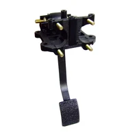 This pedal mounts two brake master cylinders with a bias balance bar and positions the master cylinders inside the firewall and away from engine heat. The pedal features all aluminum frame and arm construction with steel pivots, mounting studs, and an anti-skid pedal pad. Two ratios are offered to suit mounting and leverage requirements. Brake bias can be adjusted via balance bar. End user needs to calculate master cylinder bore size based on caliper piston or wheel cylinder size